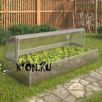 Парник Лотос имеет каркас из оцинкованной трубы и покрывается сотовым поликарбонатом. Крыша парника полукруглой формы состоит из двух сдвигающихся секций.